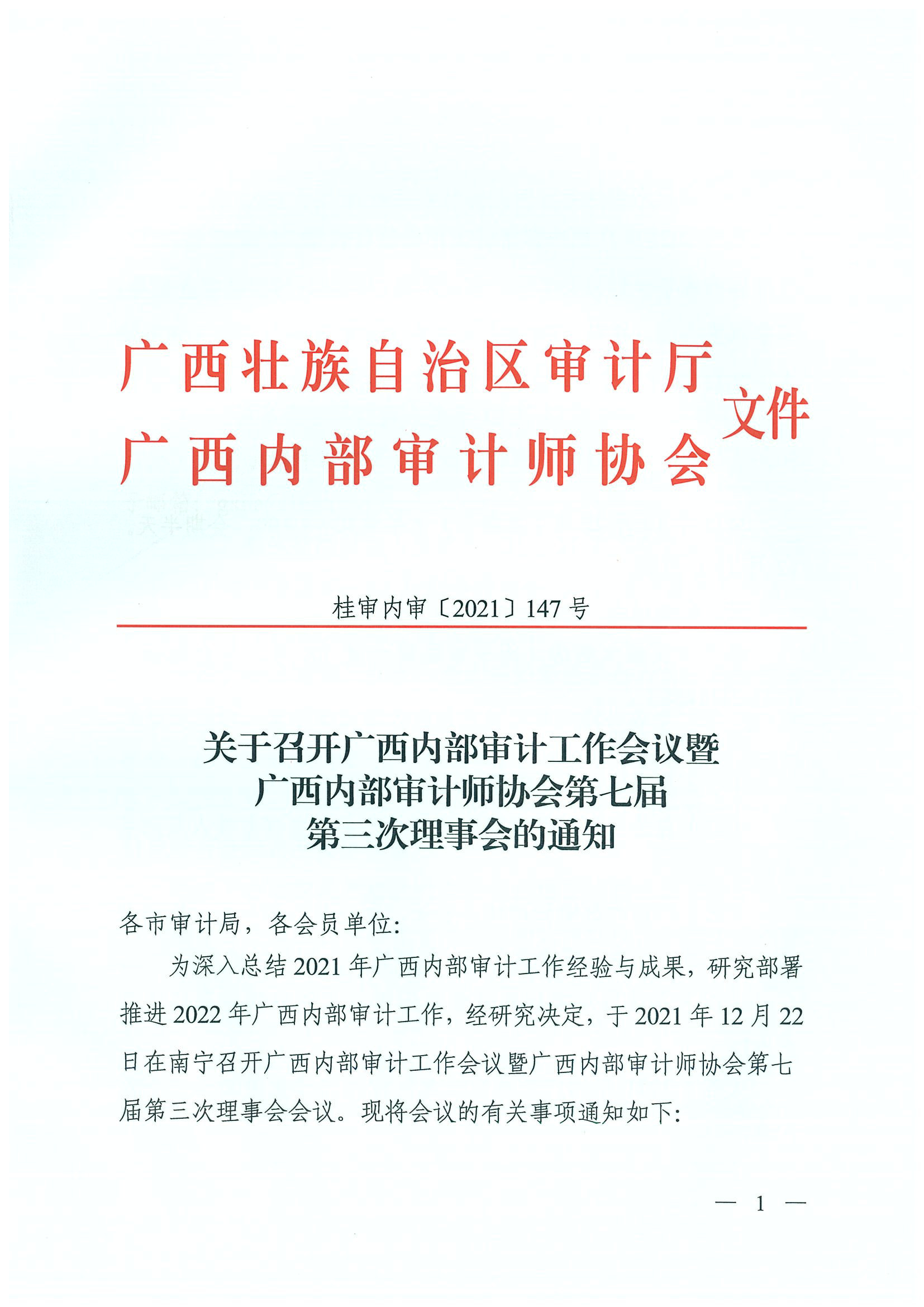 关于召开广西内部审计工作会议暨广西内部审计师协会第七届第三次理事会的通知