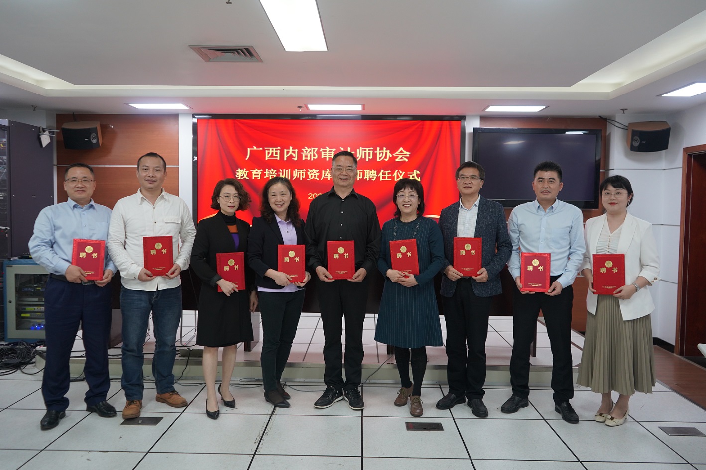 会议期间,还举行了广西内部审计师协会教育培训师资聘任仪式,向聘任教师代表颁发聘书。据悉,此次师资库选聘一批实践经验丰富、理论水平较高的内部审计专业人才,完善了内审协会教育培训师资队伍结构,为进一步做好内审人员继续教育培训工作,提高内审人员专业素质,推动我区内审工作上新台阶奠定了基础。