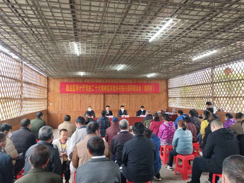 新春佳节即将到来之际,1月11日,自治区审计厅党组成员、总审计师黄小忠等领导和帮扶干部到定点帮扶村——来宾市武宣县东乡镇洛桥村开展党的二十大精神宣讲暨乡村振兴调研座谈活动。自治区审计厅内部审计指导中心、广西内部审计师协会秘书处干部职工随队参加了活动并到脱贫户家里开展春节前走访慰问,了解农户生产生活情况,向村民送上新春祝福。