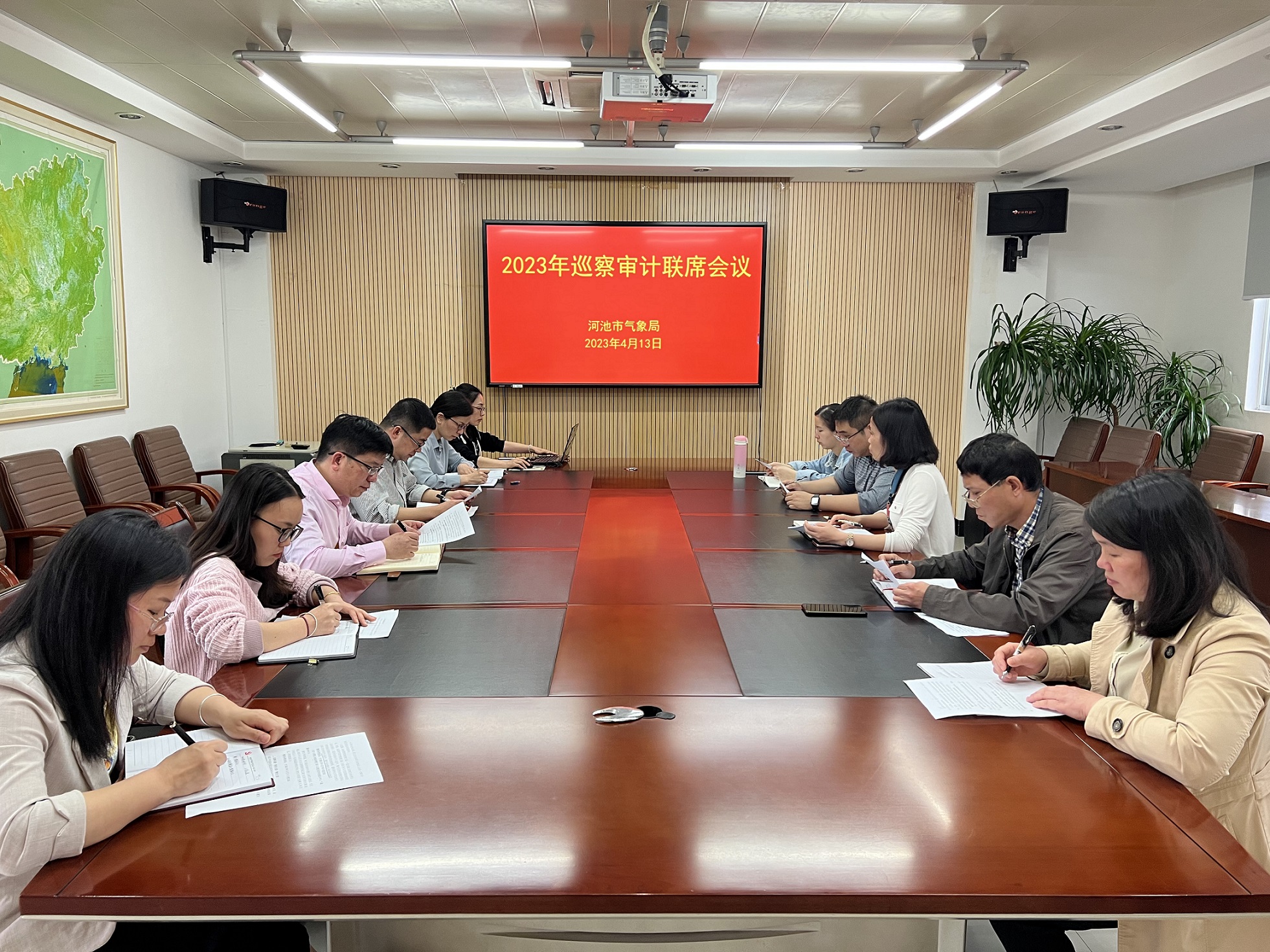 近日,河池市气象局召开2023年巡察审计工作联席会议,会议由纪检组组长罗雅主持,人事教育科、办公室、业务科、政策法规科、财务服务中心等部门有关人员参加会议。