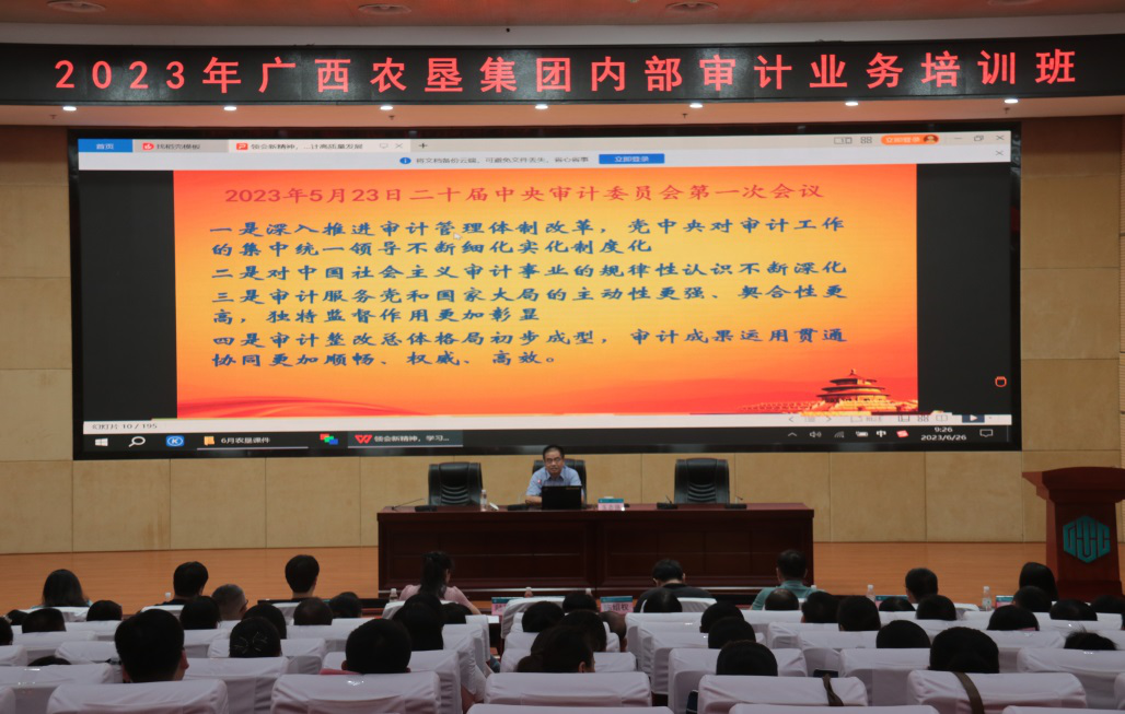 为进一步提高农垦内部审计人员提升业务素质、增强能力水平,提高农垦集团内部审计工作质量。6月26日上午,2023年度广西农垦集团内部审计业务培训班在南宁开班。本次培训由广西农垦集团有限责任公司主办、广西内部审计师协会、广西职业技术学院继续教育学院承办,来自广西职业技术学院、农垦集团二级公司分管审计的负责人和内审人员共90余人参加本次培训。