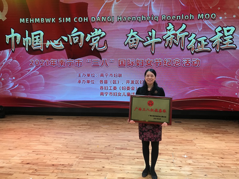 2021年3月8日,第111个国际妇女节到来之际,南宁市妇联在市妇女儿童活动中心举行“巾帼心向党 奋斗新征程”主题纪念活动,表彰来自各行各业的优秀女性个人和集体,中共南宁市委副书记杨维超出席活动并为先进个人和集体代表颁奖。南宁交通投资集团有限责任公司(以下简称:南宁交投集团)审计部经理作为“广西三八红旗集体”获奖代表上台领奖。2019-2020年度“广西三八红旗集体”南宁市共9个,南宁交投集团审计部位居其中,这份沉甸甸的荣誉属于女性,更属于内审人。