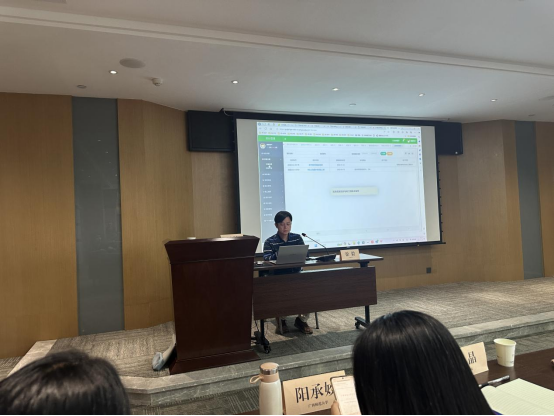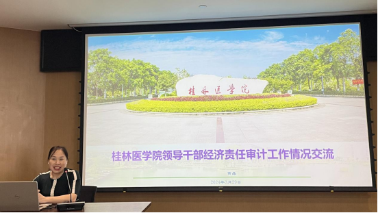 图为桂林医学院审计处黄晶处长作经验交流(秦岚/摄)