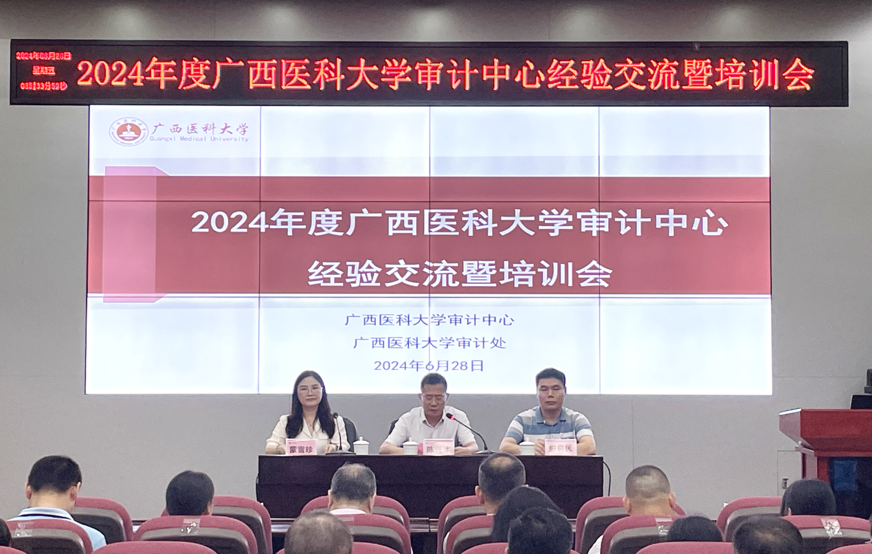 为进一步加强审计人才队伍建设、提升内部审计人员专业能力和素质水平,2024年6月28日,广西医科大学在南宁校本部综合楼9楼报告厅召开2024年内部审计工作经验交流暨培训会。广西医科大学副校长陈兴才、自治区审计厅内部审计指导中心主任彭启民出席会议并讲话,学校审计中心及有关职能部门负责人、工作人员及各直属附属单位有关工作人员约100人参加了本次会议。会议由学校审计处处长蒙雪珍主持。
