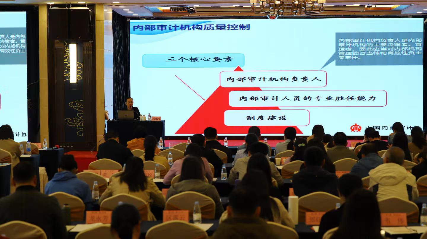 图为中国内审协会张晓瑜博士在培训班上授课(彭启民/摄)
