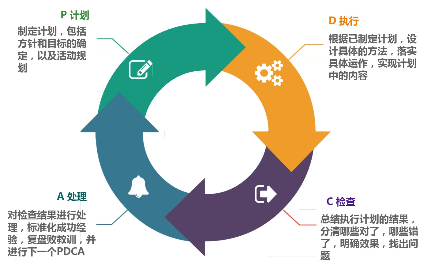 PDCA循环是美国质量管理学家休哈特博士于20世纪30年代首先提出的,起初这只是针对质量管理而提出的一个抽象框架流程的构想,并且没有形成具体的步骤和方法,只是单纯地被描绘成一条直线。之后美国的另一个质量管理学家戴明博士在该模型的基础上进行了深化改造,并将原来的一条直线扩展为一个闭环,日后又称之为“戴明环”。随后几十年经过日常质量管理中不断实践演变发展,最终形成了如今的PDCA循环,成为了全面质量管理的思想基础和方法,如今PDCA循环被广泛应用于各行各业,包括项目管理、流程改进和质量管理等方面。