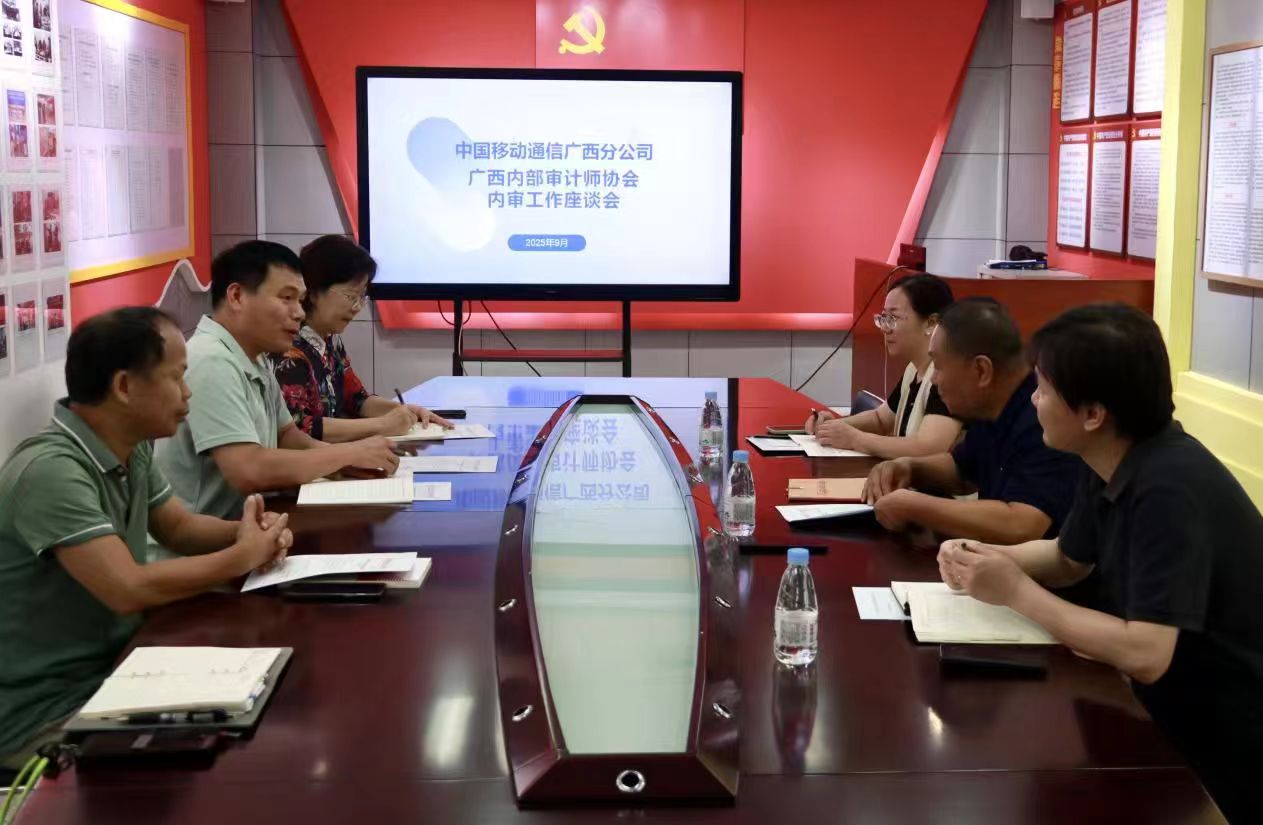 2025年9月11日,广西内部审计师协会秘书处与中国移动广西公司内审部举行内审工作座谈会。双方就新时期内部审计工作的创新发展、经验借鉴与深化合作进行了深入交流与探讨。中国移动广西公司内审部总经理伍剑威一行3人出席座谈。