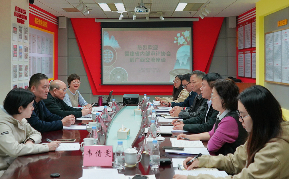 近日,福建省内部审计协会会长王学军一行4人到广西内部审计师协会开展工作交流。广西内部审计师协会会长陈勇新及协会秘书处人员参加座谈交流。