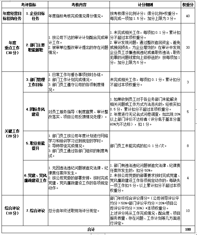 经核查,共梳理出交投城·东院项目6大类25个风险事项75种表现形式。审计意见下达后,加强对被审计单位整改指导,建立整改台帐,实行销号管理,定时更新统计审计发现问题整改情况。区分“立行立改、分阶段整改、持续整改”三种类型,多渠道推动问题整改到位,实现审计问题闭环管理。强化整改考核机制。实行月度和年度考核方式,将审计整改情况与绩效考核挂钩,对未完成整改工作的实行扣分(见图6),督促交投城·东院项目完成整改。交投城·东院项目审计问题整改率达95%以上。