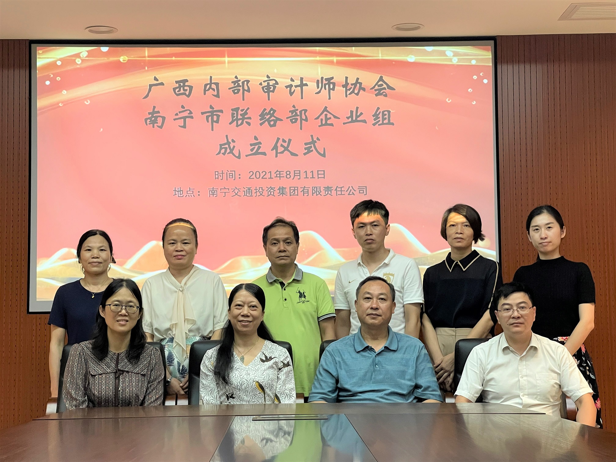 2021年8月11日上午,广西内部审计师协会南宁市联络部企业组正式宣告成立,南宁市审计局内部审计指导监督科科长周开元,南宁交投集团、南宁威宁集团、南宁轨道交通集团、南宁建宁水务集团、南宁农工商集团、南宁金融集团、南宁产投集团、南宁城投集团、南宁五象投资公司等9家企业审计部门负责人参加成立仪式。
