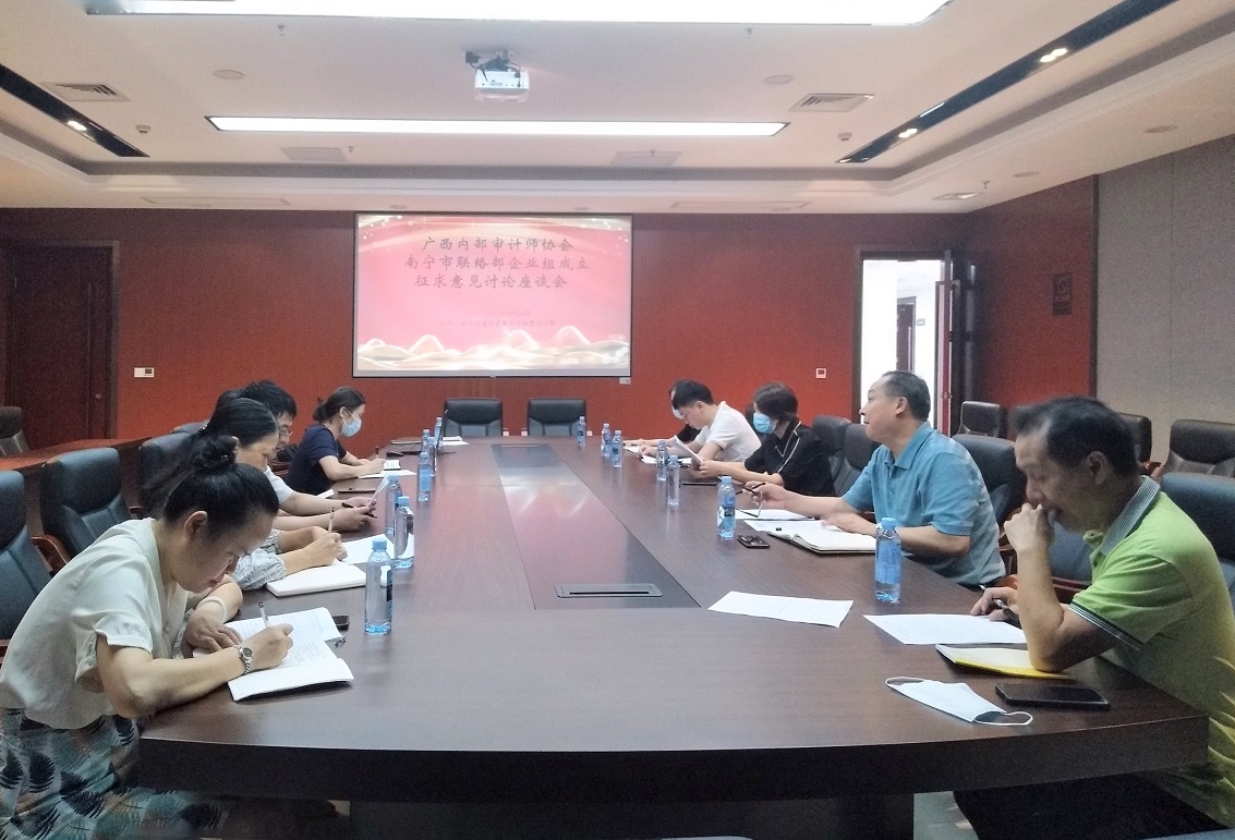 企业组正式宣告成立前,南宁市审计局周科长和9家企业审计部门负责人在南宁交投集团开展广西内部审计师协会南宁市联络部企业组成立征求意见讨论座谈会。会上,周科长介绍了企业组成立的背景、意义和要求,与会人员就企业组成立方案进行热烈讨论。会议确定了企业组成立时间,明确了企业组成员组成、组长、副组长,并决定由南宁交投集团审计部门负责人作为发起人负责企业组组建工作、制定企业组会员年度活动计划、管理企业组日常工作。